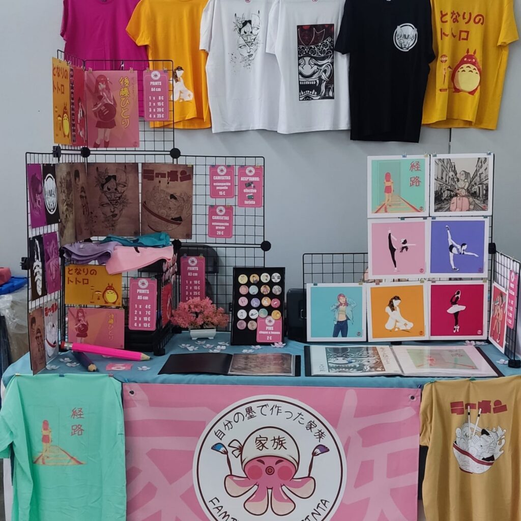 Obviamente, cuando nos encontréis en este tipo de stand, encontraréis nuestras ilustraciones en forma de prints y camisetas, en ocasiones en otros formatos también.