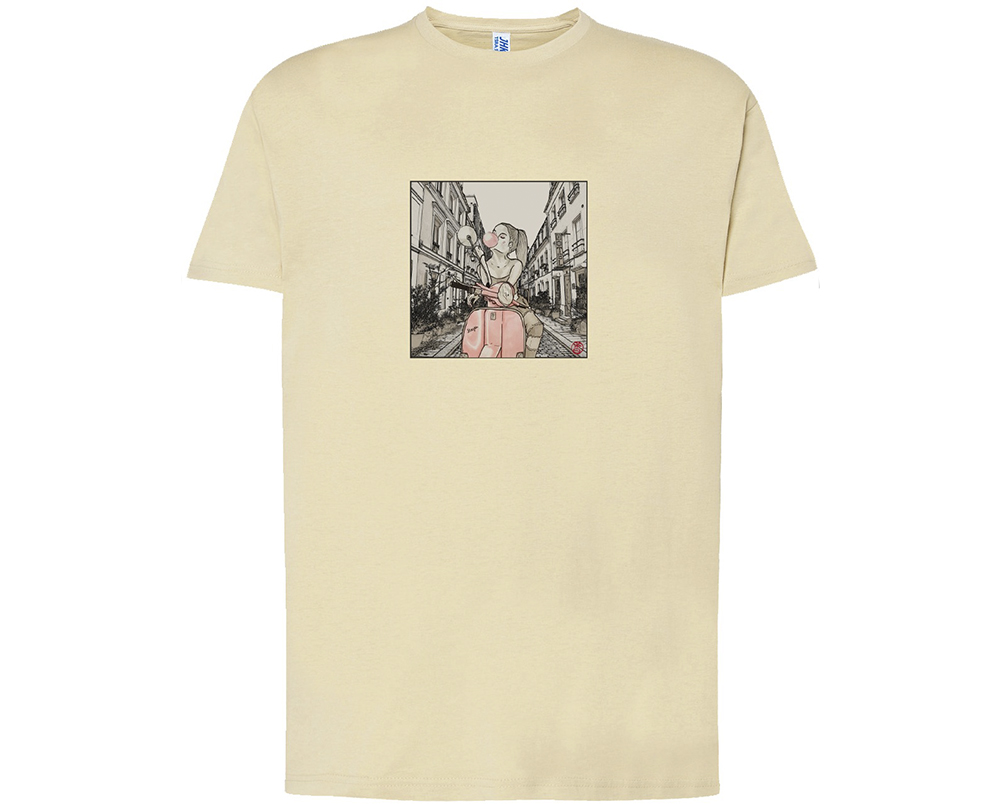 Camiseta 100% algodón de color lavanda con la ilustración «Bubblegum Girl» realizada por Chibi Valls.