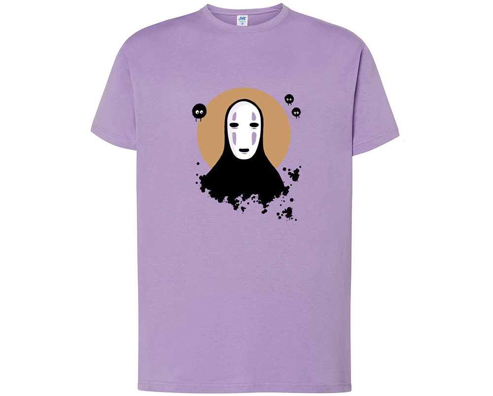 Camiseta 100% algodón de color lavanda con la ilustración «Kaonashi», fan-art realizado por Chibi Valls de Sin Rostro, del anime El Viaje de Chihiro del Studio Ghibli.