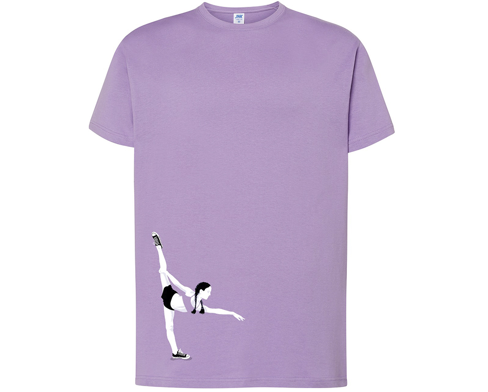 Camiseta 100% algodón de color lavanda con la ilustración «West Side Dancer» realizada por Chibi Valls.